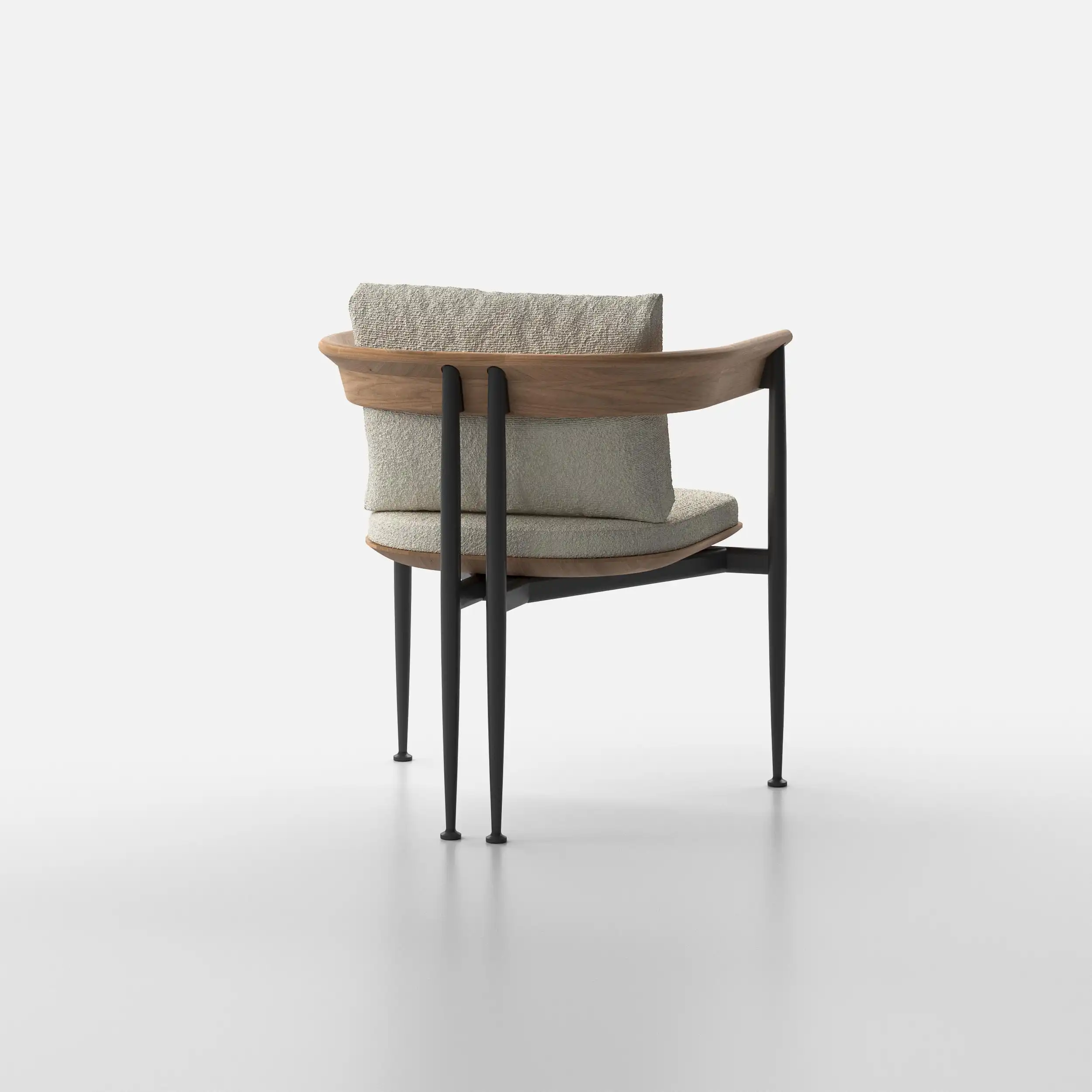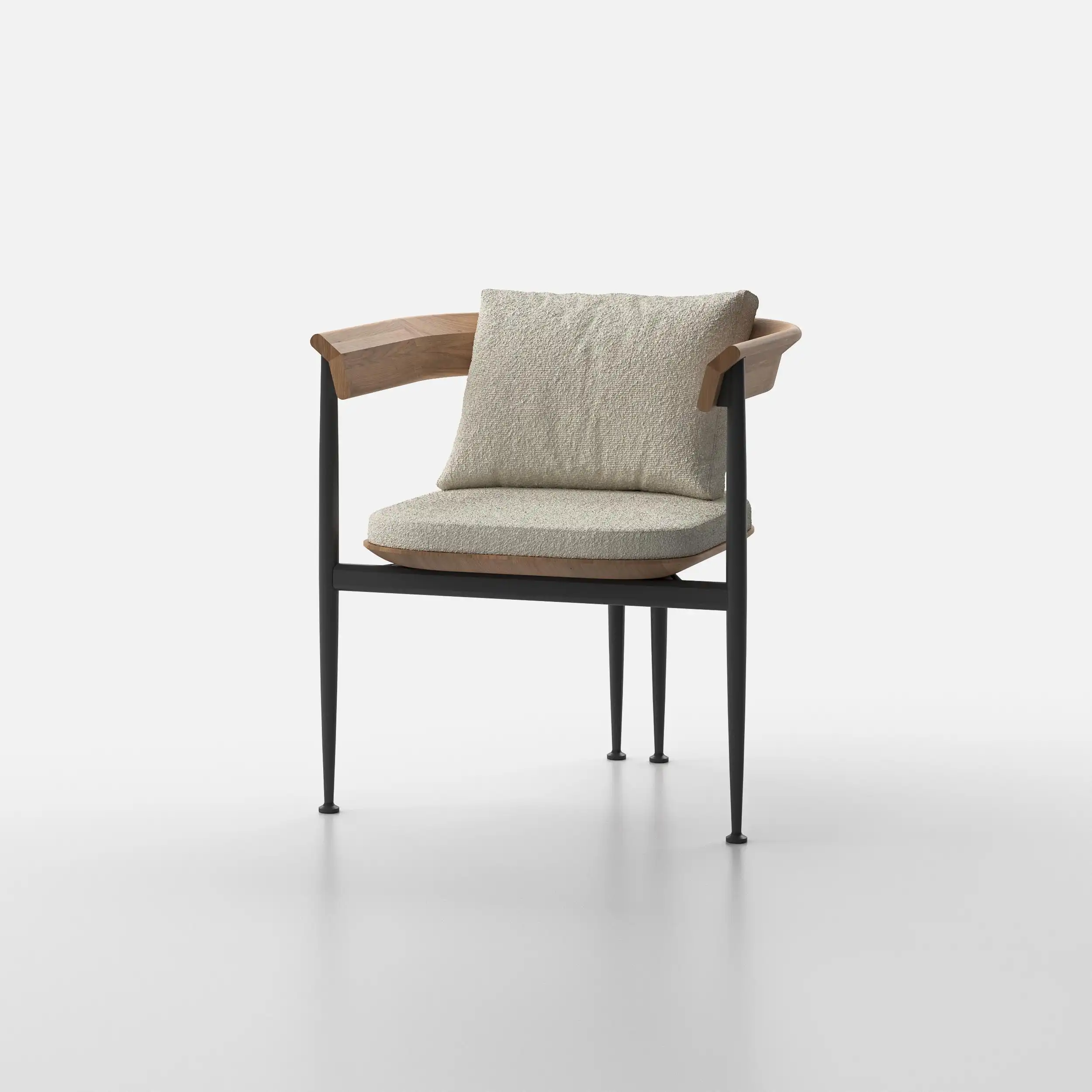 The Arpa Dining Armchair combines elegance and functionality, featuring a sturdy aluminum and teak frame. The cushions are made from high-density foam, available in quick-dry options, ensuring comfort and durability.