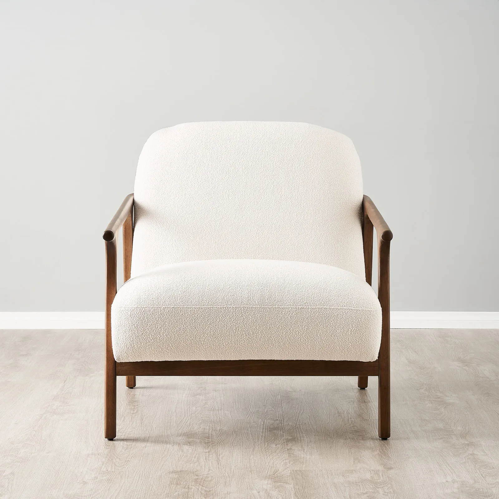 The Aurora Occasional Chair blends comfort with elegant design. Its soft white fabric and plush cushioning create an inviting seat, perfect for relaxation or adding a touch of sophistication to any room.