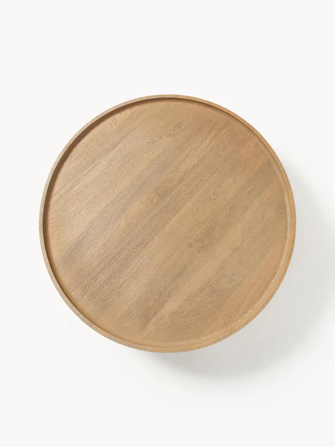 The Solara Coffee Table features a striking round silhouette crafted in warm mango wood, offering both natural texture and visual balance. Its minimalist form brings softness and flow to modern interiors while maintaining an inviting presence.