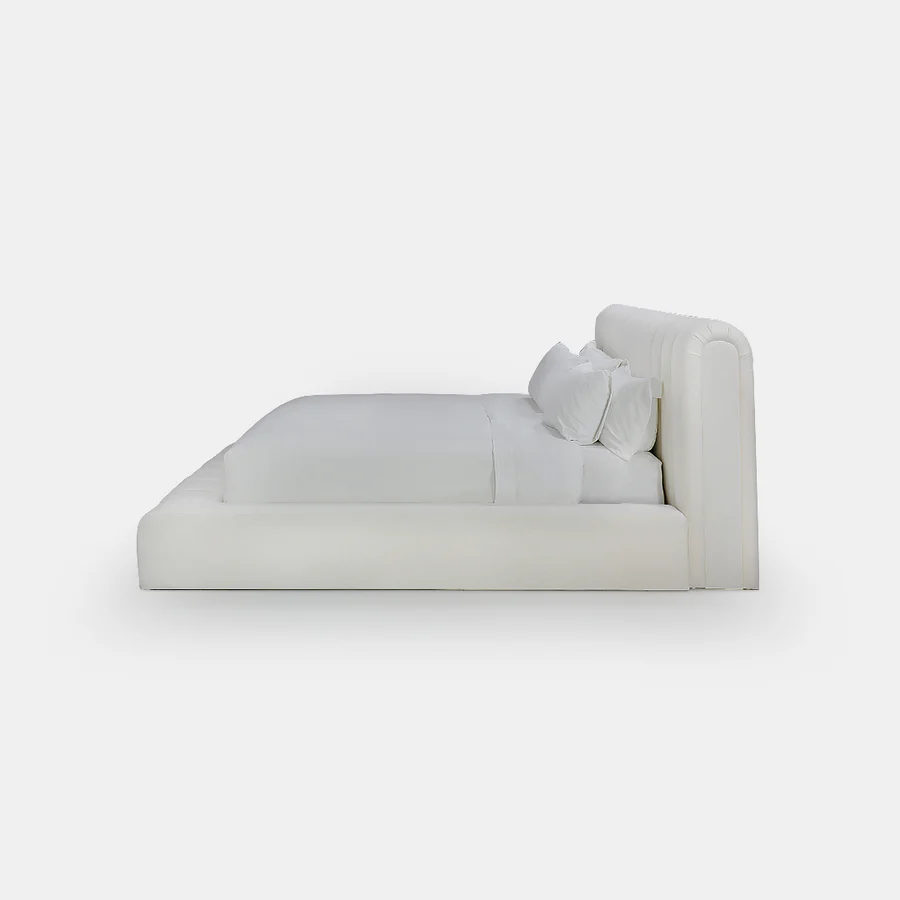 The Urto King Bed features striking quilted channel detailing that blends classic elegance with modern aesthetics. Crafted as a low-profile luxury piece, it’s available in King size and can be fully customized in terms of design, dimensions, and upholstery fabric. Choose from a wide range of bouclé, velvet, linen-blends, and other textures to align with your décor. Its refined geometry and bespoke possibilities make it a statement focal point for any bedroom.